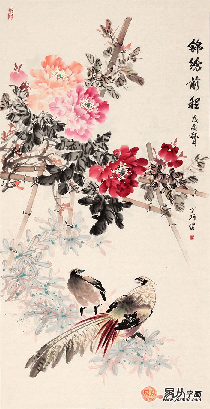 孔雀挂画推荐:丁珂吉祥牡丹图。