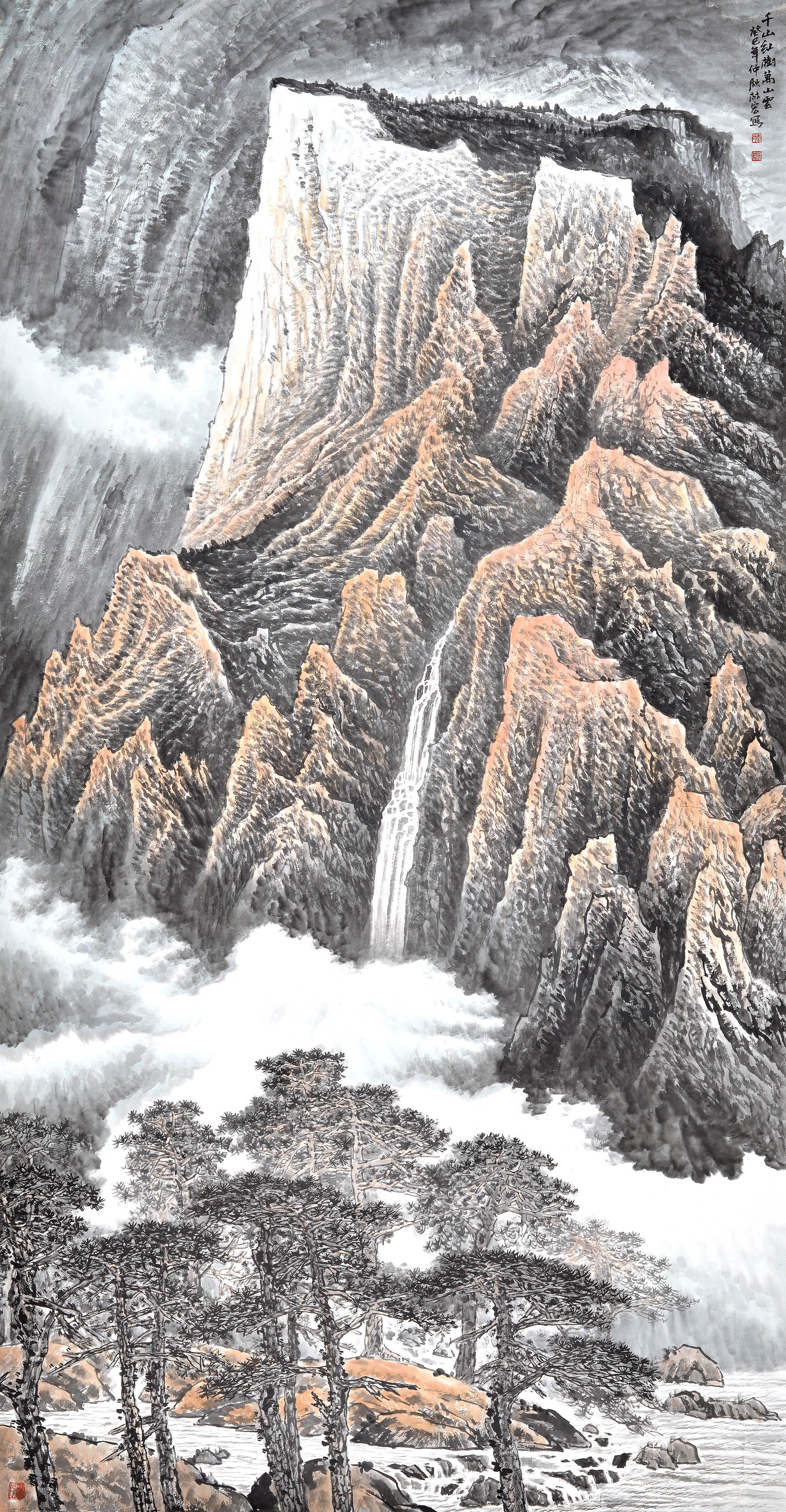 - 千山红遍 画家徐坤连山水画《千秋笔墨惊天地,万里云山入画图》