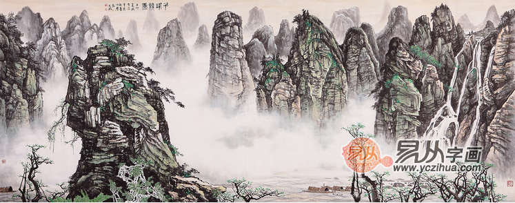 - 徐坤连最新力作八尺横幅山水画作品《峡江雄风》峡江胜景 引人入胜